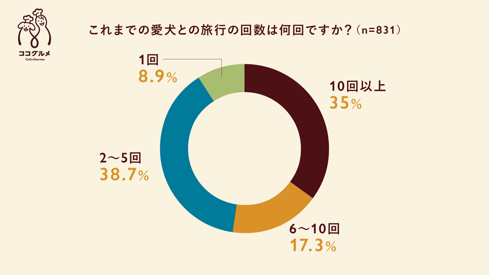 9割以上が愛犬と複数回旅行しており、10回以上も35.0%と高い割合を占める