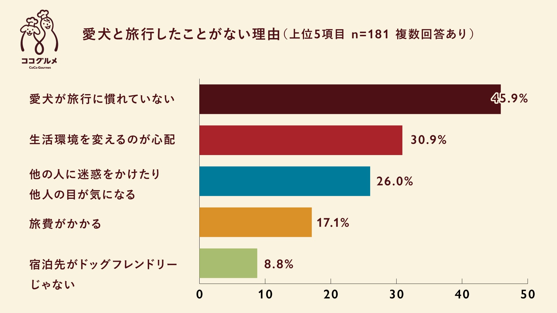インバウンド需要の戻りや値上げの影響によって物理的、経済的に旅行自体が難しい状況にあっても、愛犬家の間では、我が子を連れての旅行需要は以前高い状態であることが、今回の意向調査の結果から考察できます。