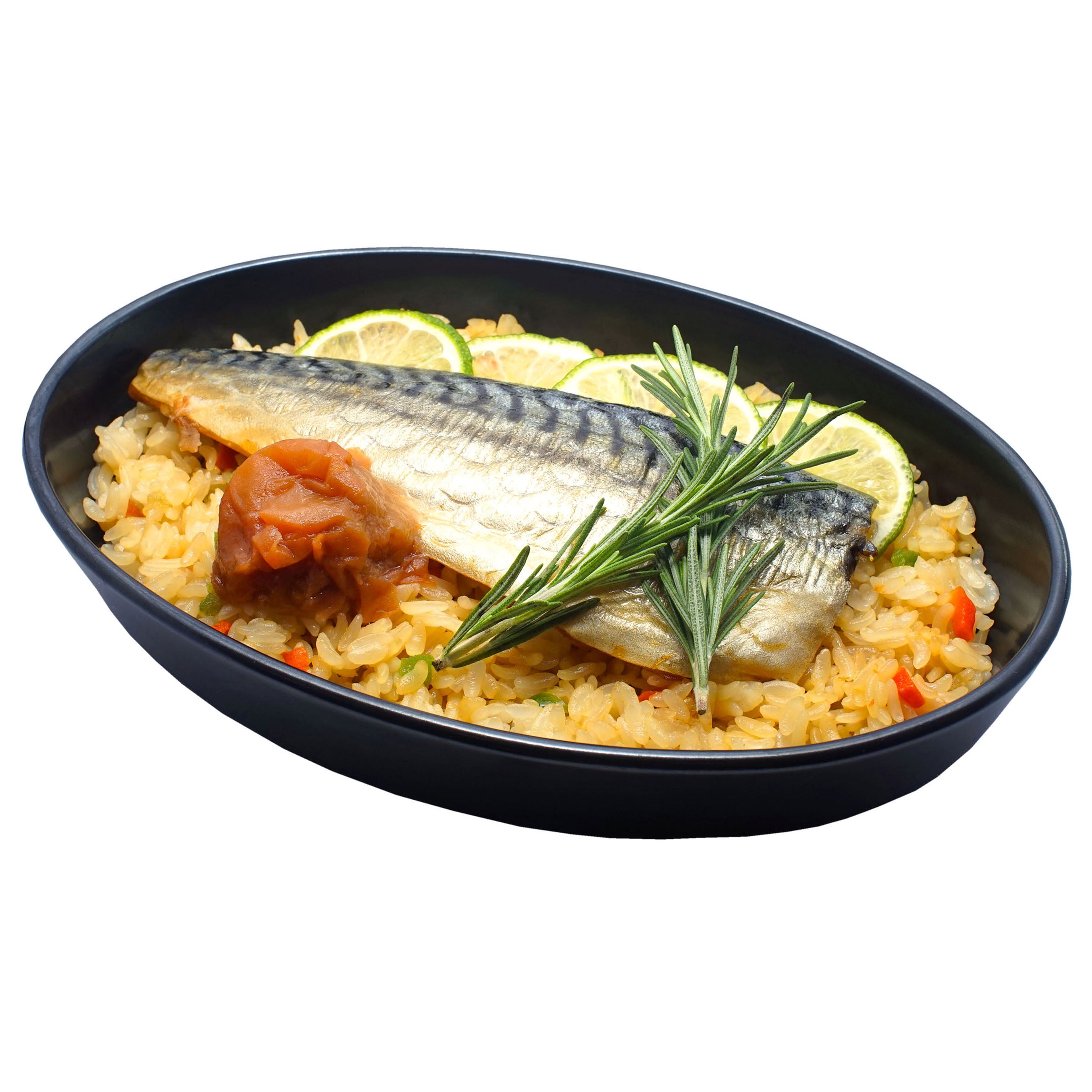 ・梅酒風味のサバ炊き込みご飯 燻製梅添え