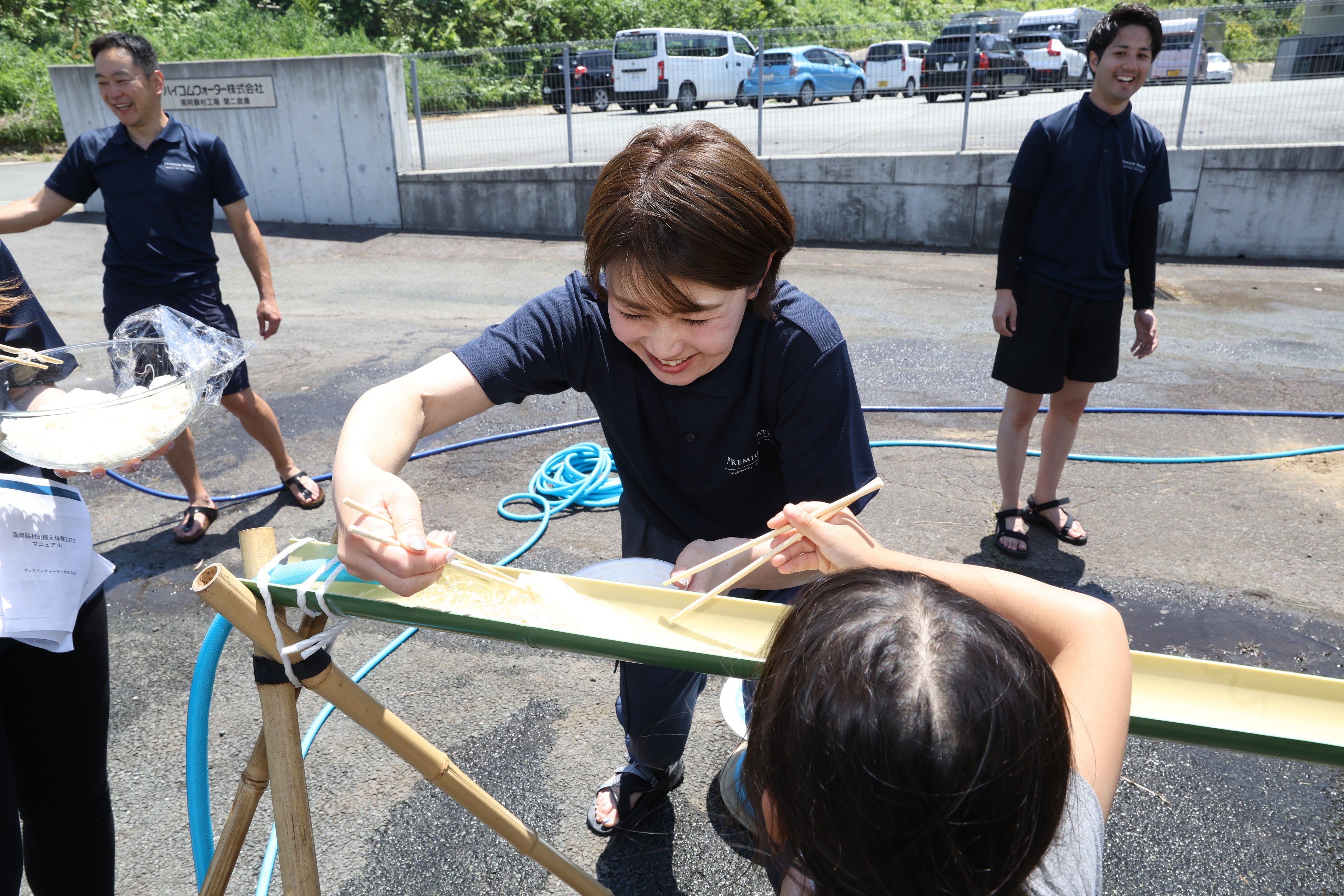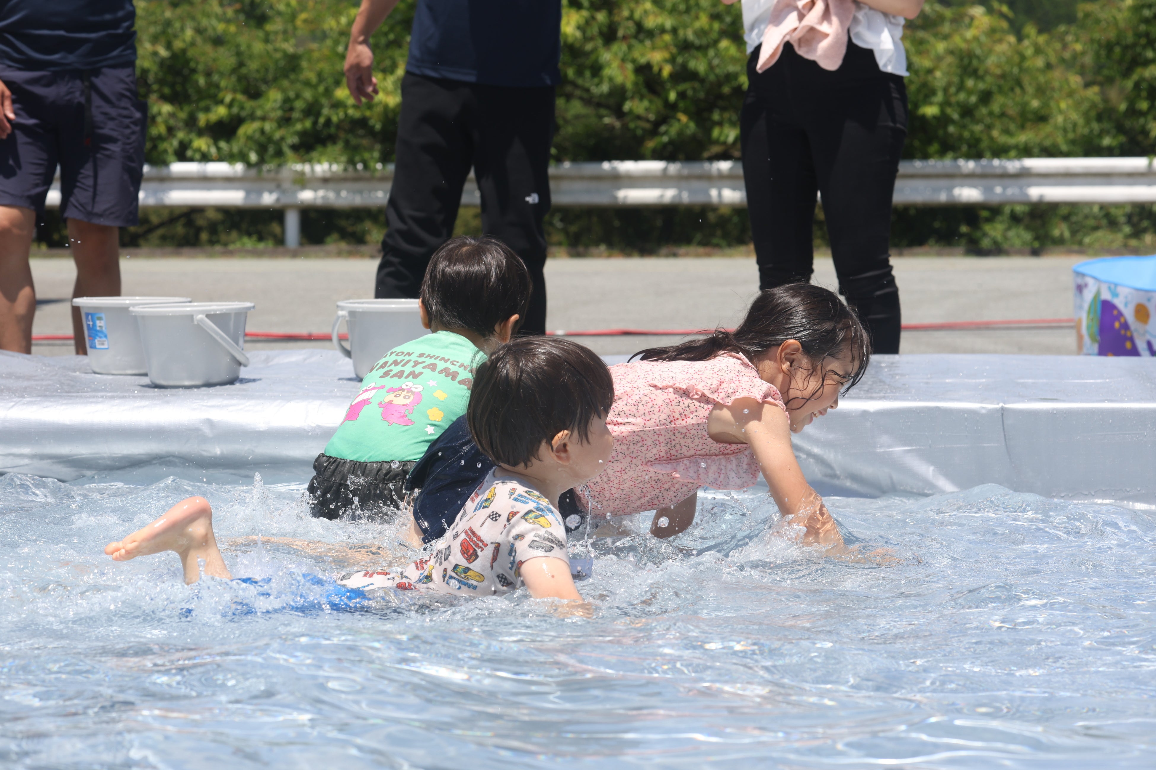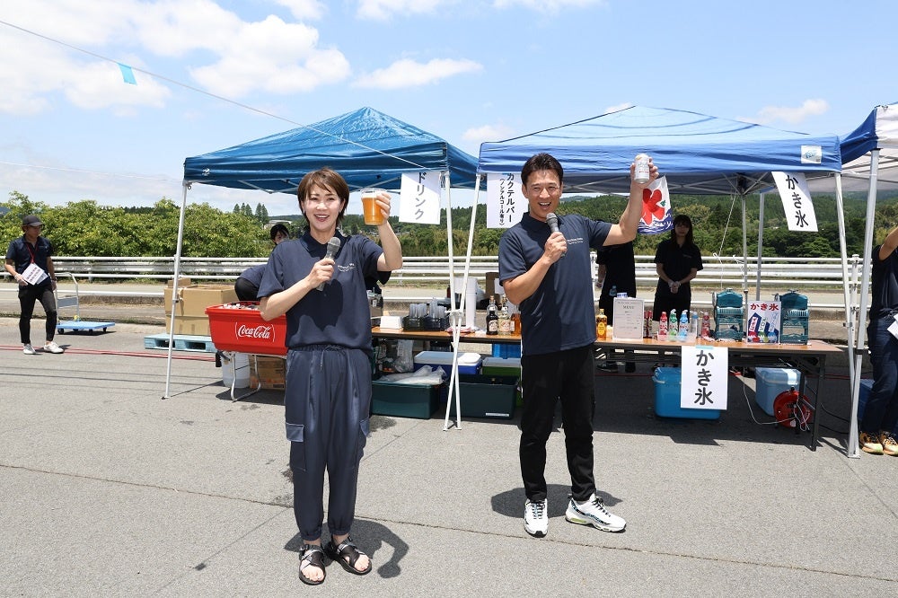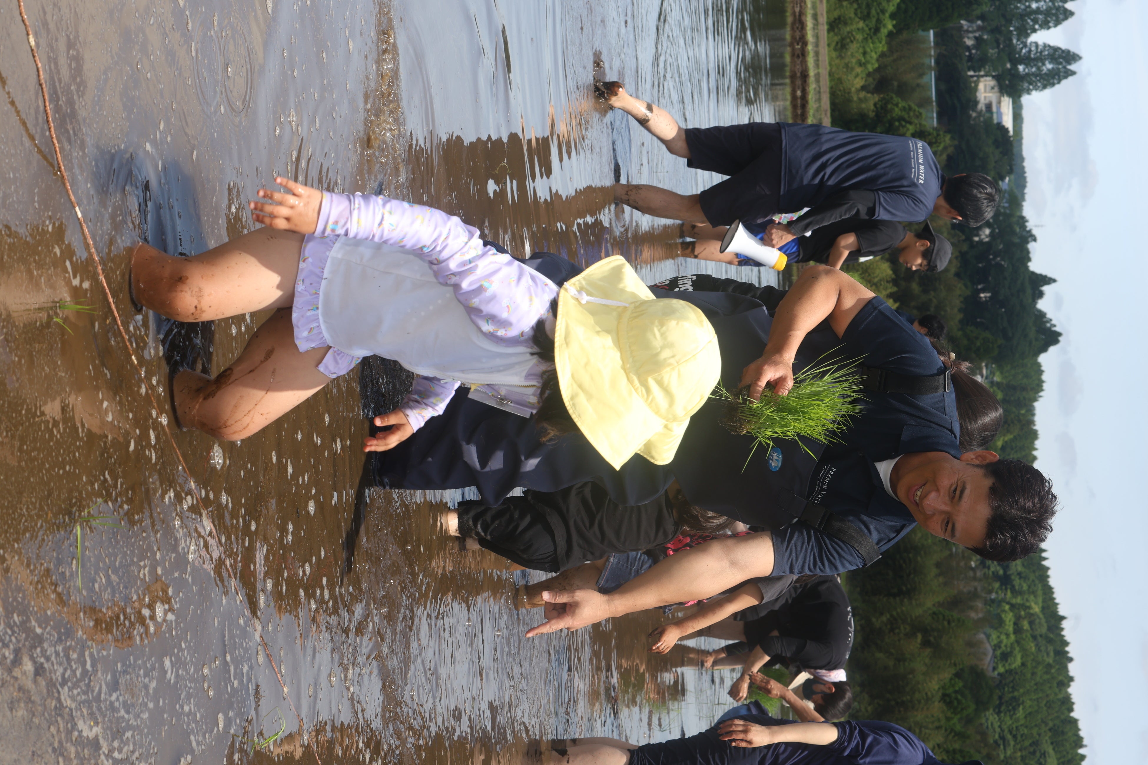 今年はコロナ禍を経て4年ぶりの開催となり、スペシャルゲストとして熊本出身のプロゴルファー古閑美保さんと、熊本・福岡を中心にテレビ番組で活躍し人気を集めているタレントの高村公平さんをお招きし、ご参加いただいた皆様と一緒に雄大な阿蘇の山々を目の前に田植えを体験しました。また、参加した子どもたちに向けて田植え体験の他に、プレミアムウォーターの工場見学や生き物観察会、熊本名産あか牛のBBQ、やまめつかみ取り大会等も実施しました。参加者が一体となり熊本の大自然を思う存分に楽しみ、イベントは大盛り上がりでした。