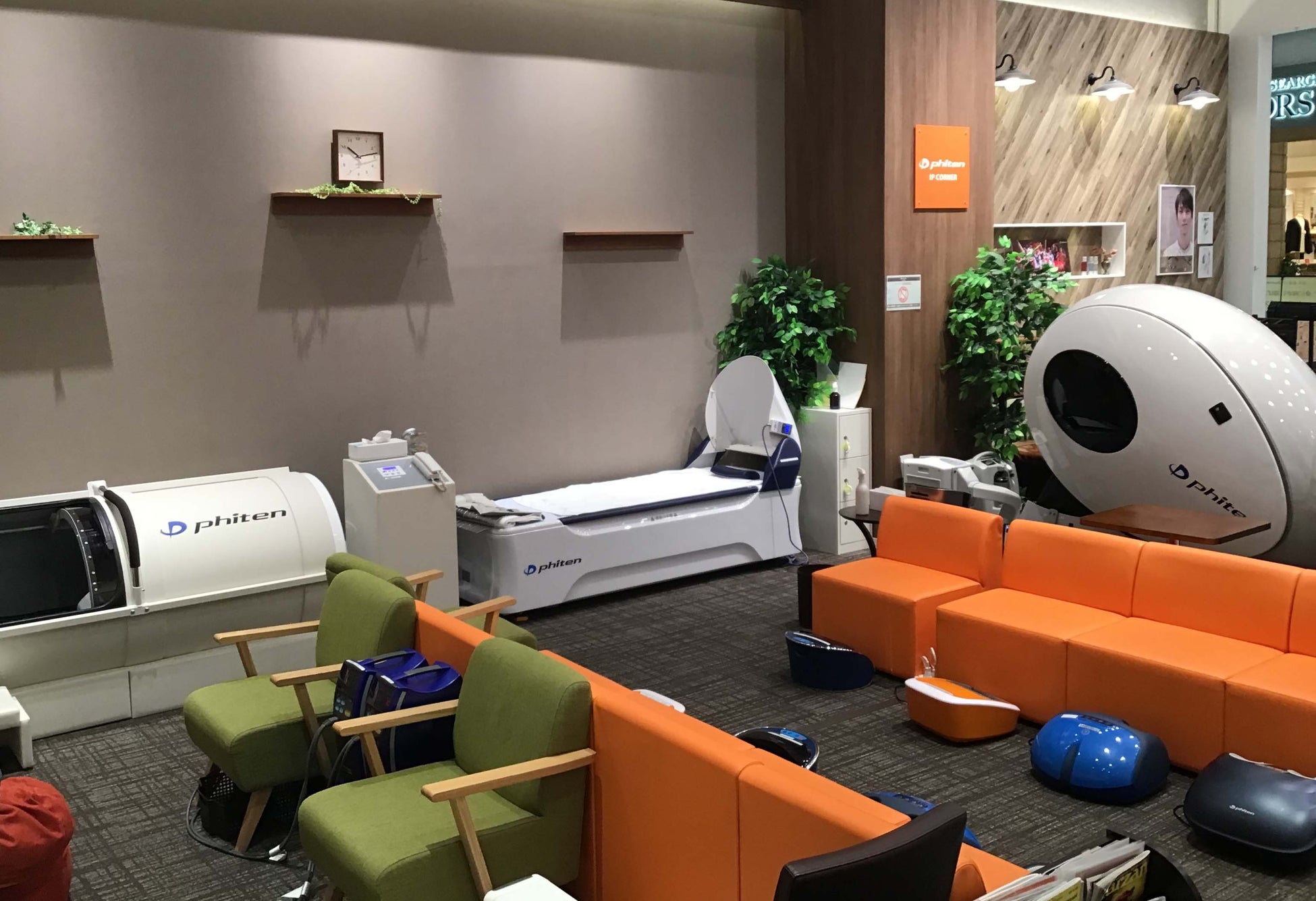 ファイテンショップには、様々なオリジナルマシンを設置した疲労回復コーナーを併設しております。※一部店舗を除く。