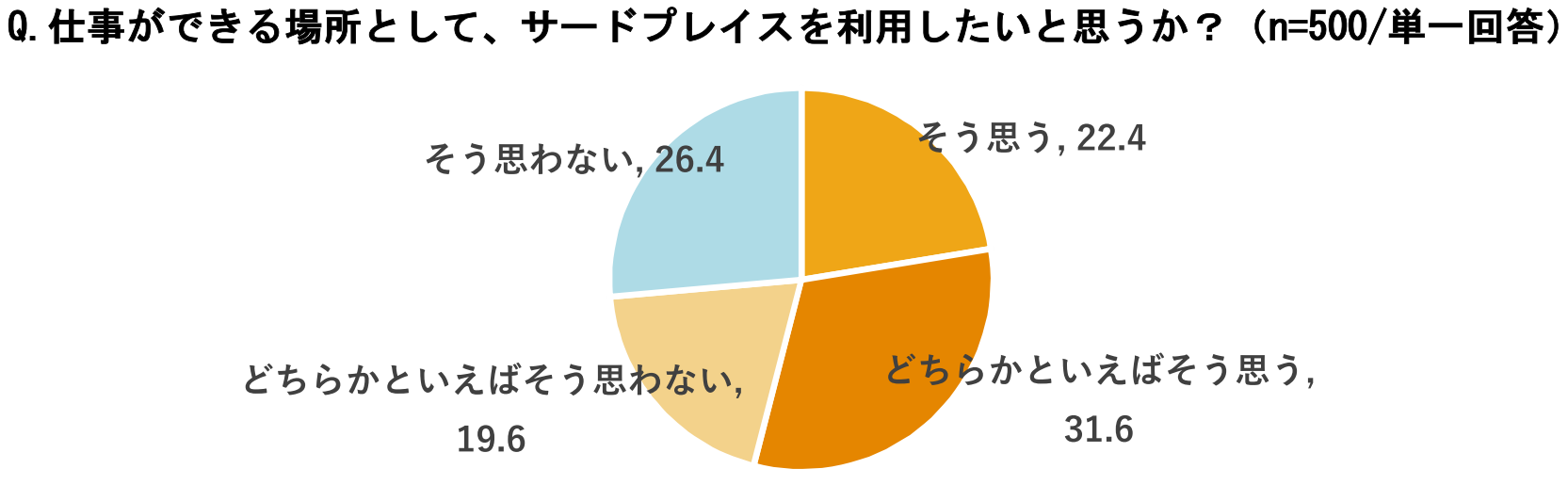 仕事ができる場所としてサードプレイスを利用したいか聞くと、54.0%が利用意向を示しています。
