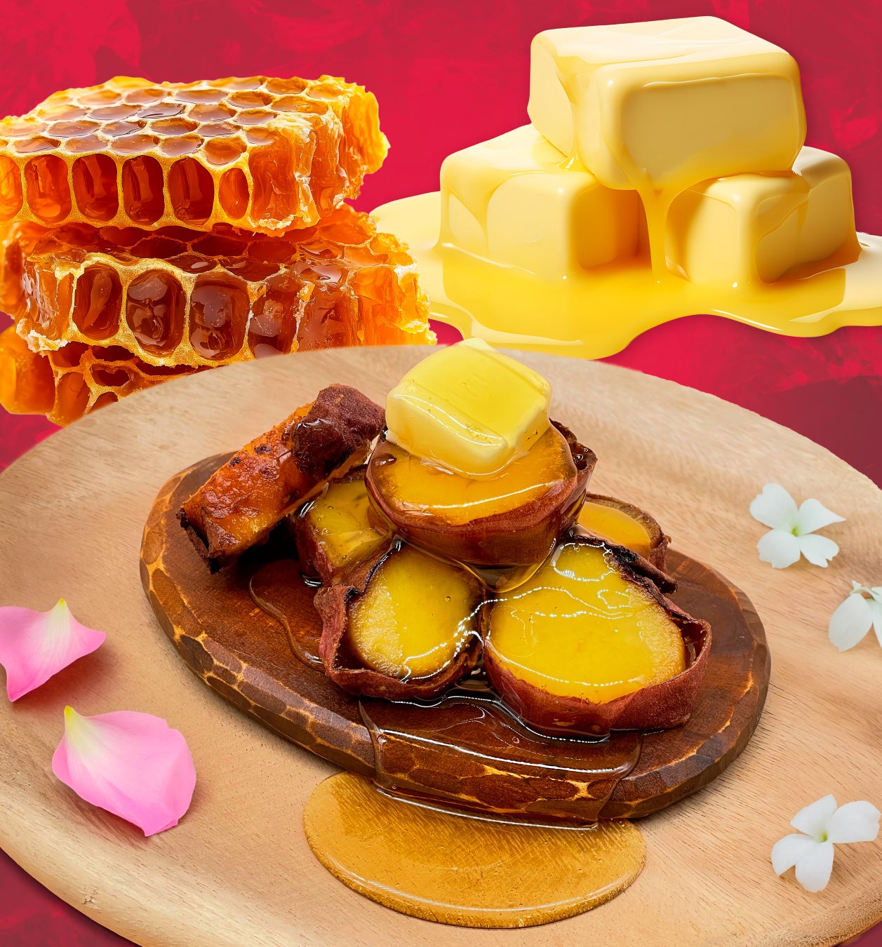 焼き芋を揚げたことはありますか?揚げた焼き芋の食感は表面カリッとなかはとろ〜りとジューシー。そこへ、バターとはちみつが合わないわけがない。ホットケーキを超えるスイーツと自負しております。