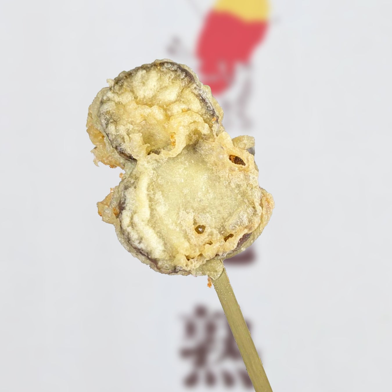 菟月謹製の「完熟やきいも」を食べやすい串状の天ぷらにしました。外はサクッと中は柔らかいさつまいもの天ぷらをご賞味くださいませ。