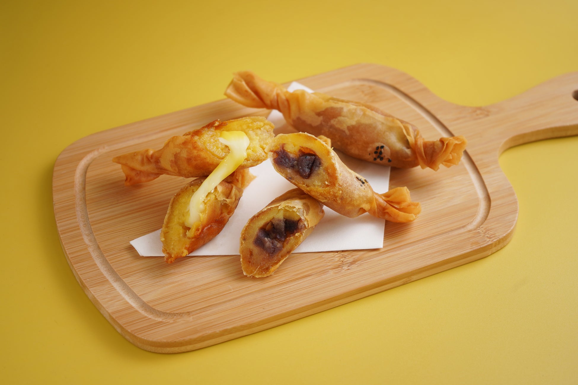 自慢の焼き芋と特製チーズを一本一本手仕込みで巻きました。チーズと焼き芋の相性が最高です。チーズも伸びるし写真も映える大人も子供も楽しめる一品です。あんバターは、当店の焼き芋に合うこし餡とバターを職人が厳選し一本一本手仕込みで巻き上げました。口の中でバターとやきいもとあんこが広がる新食感をお楽しみください。
