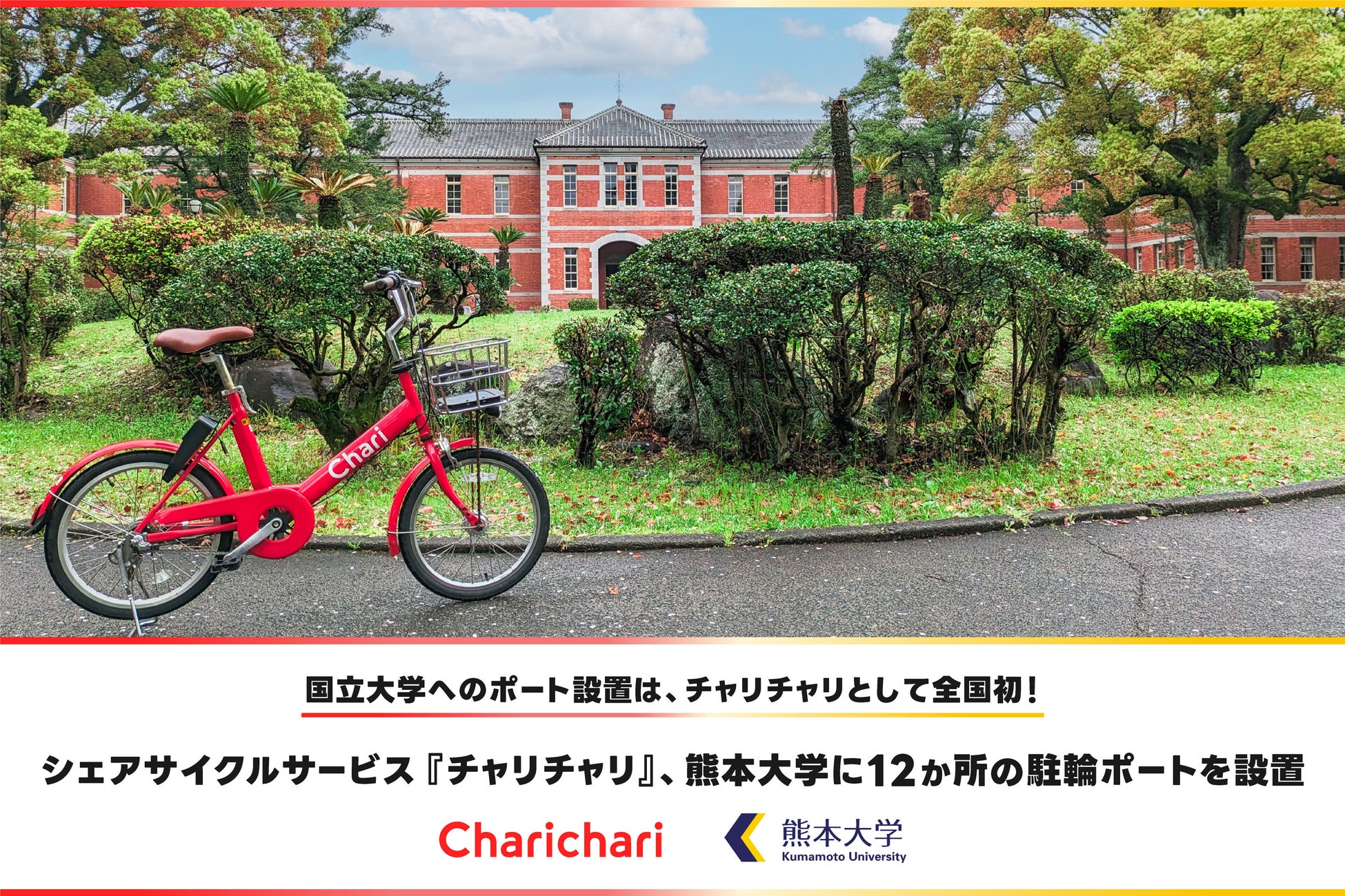 【熊本エリア】シェアサイクルサービス『チャリチャリ』、熊本大学に12か所の駐輪ポートを設置