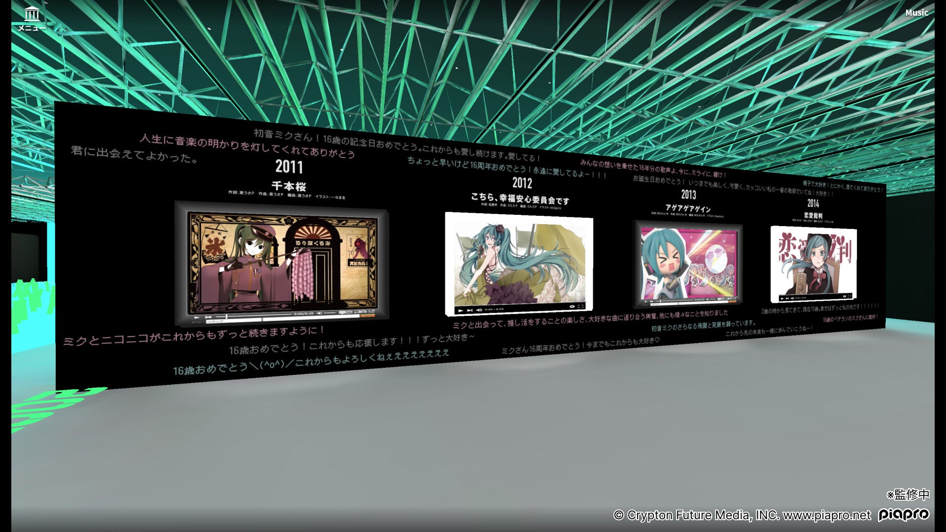 『初音ミク』16周年を記念したオンライン展覧会が開催!『MIKU 16th Virtual Exhibition』8月1日より待望のグランドオープン!