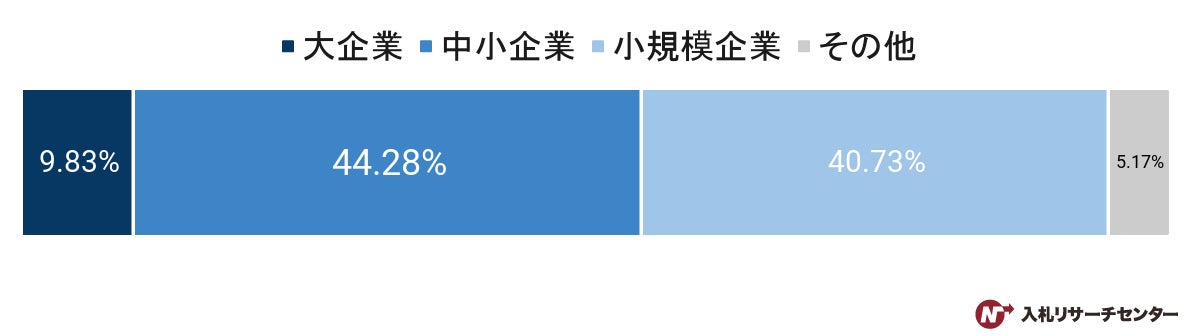 全省庁統一資格を新たに取得した新規企業のうち、中小企業は44.28%、小規模企業は40.73%となりました。