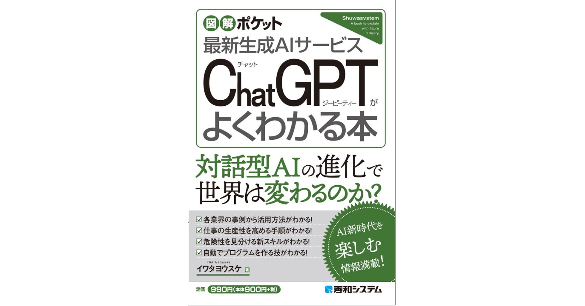 文春オンラインでいち早くChatGPTの記流したイワタ ヨウスケ氏が、ChatGPTの誕生の経緯から機能や使い方まで、AI初心者でも1日で読めるコンパクトな書籍である「図解ポケット ChatGPTがよくわかる本」を執筆いたしました。