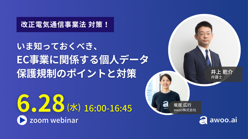 本セミナーは、アンダーソン・毛利・友常法律事務所の井上 乾介 弁護士をゲストにお招きし、これらのEC事業に関係する個人データ保護規制のポイントやその対象事業者を明確にした上で具体的な対応策を解説します。