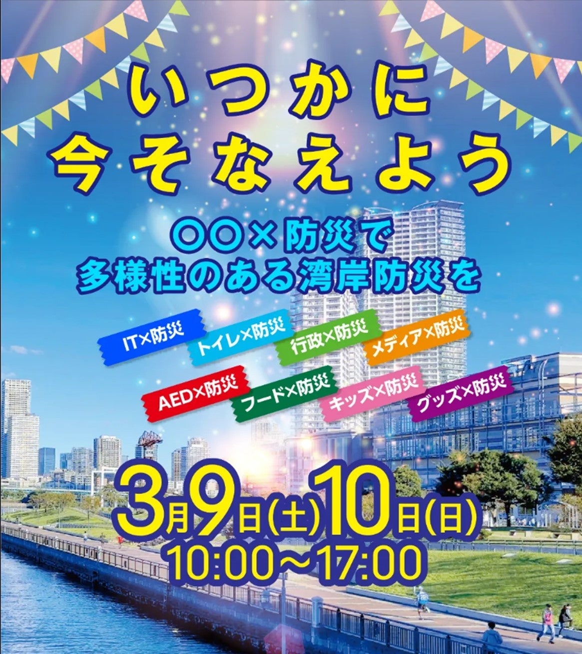 「豊洲防災」とは、湾岸地域および高層マンションエリアにおける防災に関する課題を共有。共生社会をキーワードに、コミュニケーションの場を提供し、防災の備えを共有するためのイベントです。