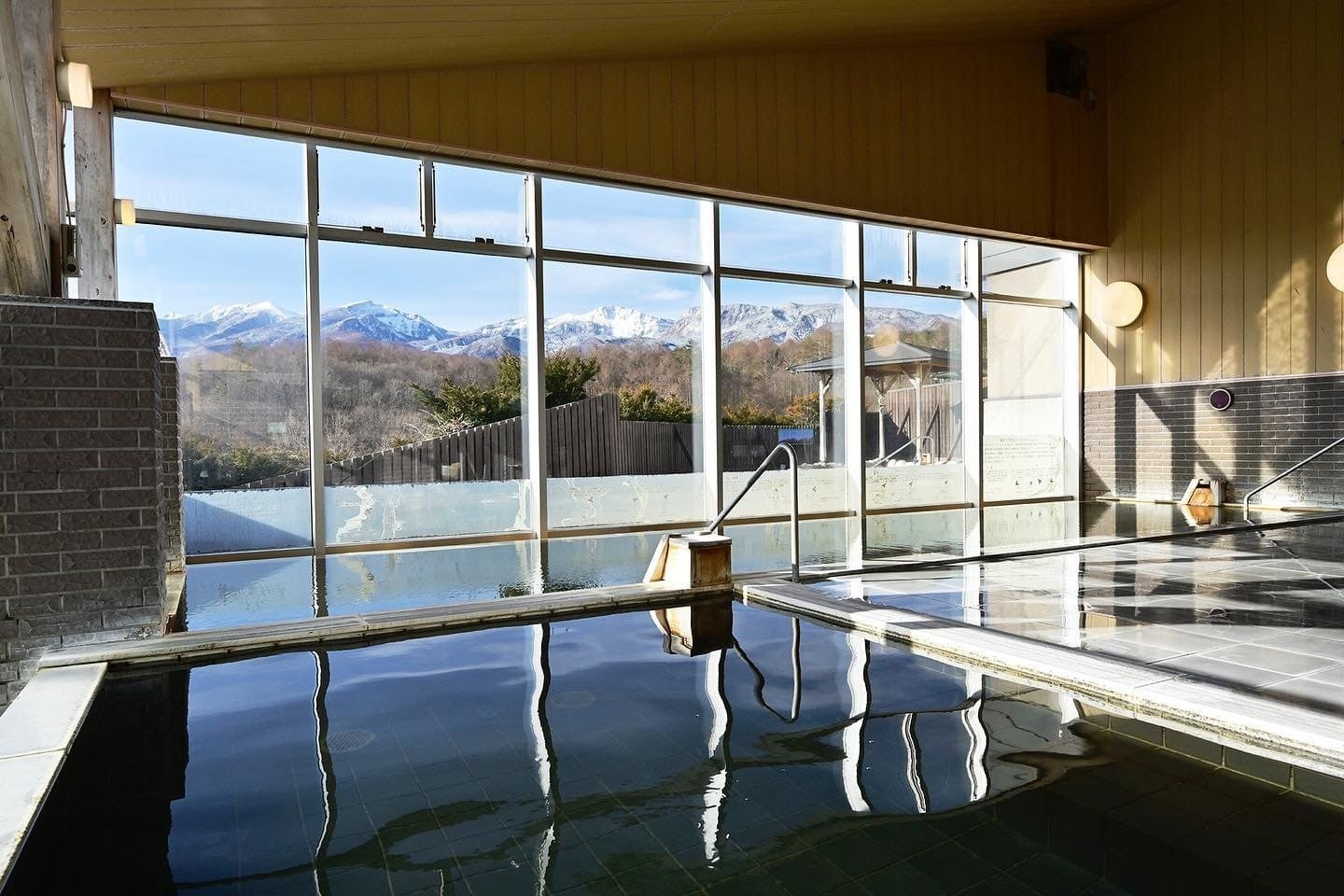 町内の源泉かけ流し温泉「八峰の湯」を無料でご利用いただけます。全国的にも珍しい炭酸水素塩泉で、皮膚をなめらかにする泉質で美肌効果あり。ご希望の方へは、当日送迎を行っております。