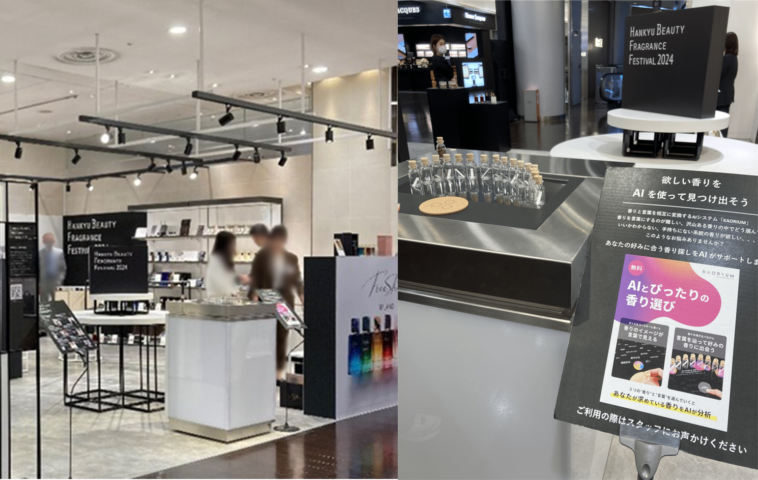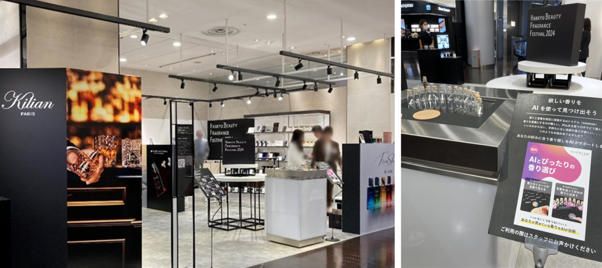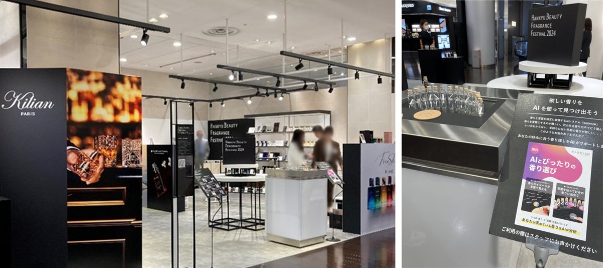本イベントは、世界の最旬の香水ブランドから限定・先行アイテムやトークショー、音楽ライブ、香りのコンサルティング、調香体験ワークショップなど、五感すべてで楽しめる新感覚のフレグランスフェスティバルとして多くのお客様にお楽しみいただきました。今回「HANKYU BEAUTY FRAGRANCE FESTIVAL 2024」に、香りと言葉をつなげる新感覚AIとしてセントマティック社のKAORIUMが採用されました。