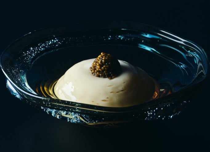 糖度の高いフルーツトマトに、エスプーマを加えて軽い 口当たりに仕上げたソースを合わせたシンプルなカッペ リーニ。仕上げにはフランスKaviari社のクリスタルキャ ビア「KEI Selection」を贅沢にあしらった一品。トマト の 爽やかな酸味と濃厚でクリーミーなキャビアの組み合 わせをお楽しみいただけます。