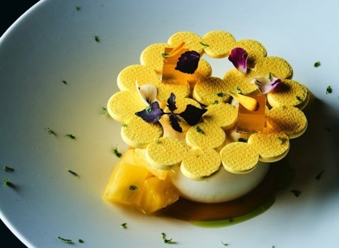 Restaurant KEIのシグネチャーデザートとして知られる 「ヴァシュラン」をオマージュし、KEI Collection PARIS 仕様にアレンジ。濃厚なクリームチーズのパルフェや、マ ンゴーとパッションフルーツのソルベ、パイナップルなど トロピカルフルーツと、サクサクとした食感が楽しいメレ ンゲと合わせてお楽しみいただける夏にぴったりのデザー トをご用意いたします。