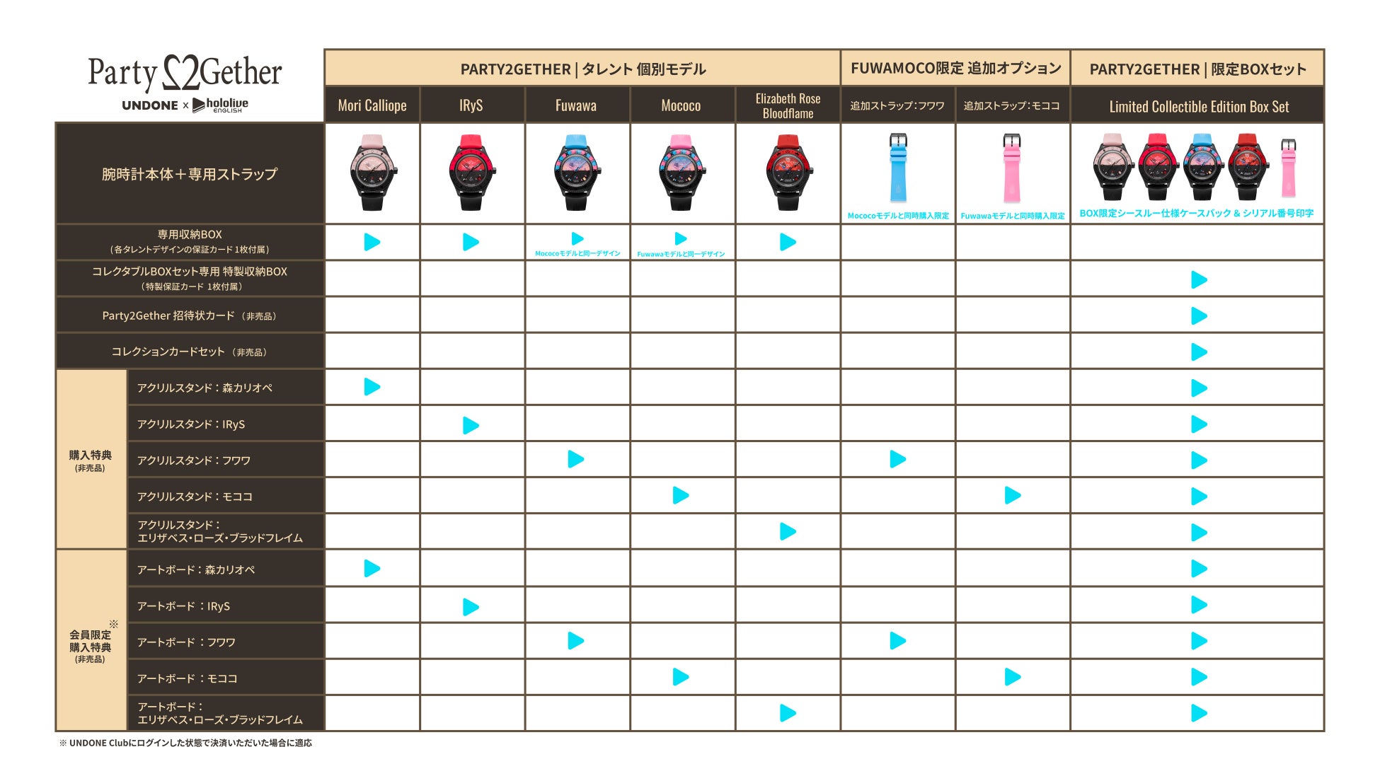 株式会社UNDONE JAPAN(本社:東京都渋谷区)は、カバー株式会社が運営するVTuberグループ「ホロライブEnglish」所属のVTuberとコラボした、UNDONE ✕ hololive EN「Party2Gether」コラボウォッチ(以下、「Party2Gether」コレクション)の予約販売を 2024年12月21日(土)に開始いたしました(2025年1月31日受付終了)。