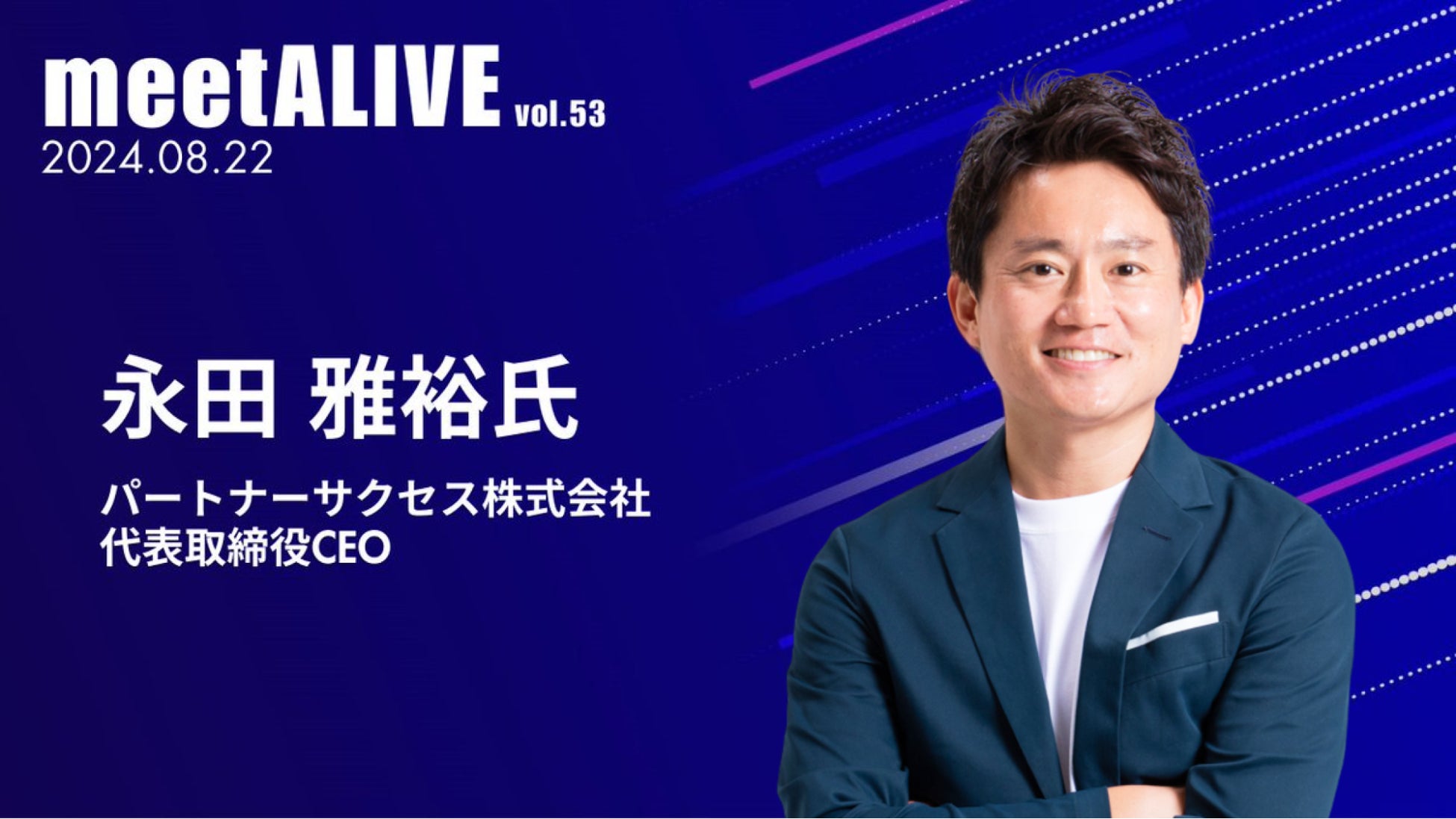 代理店販売で収益を最大化するPRM(※1)-代理店連携管理クラウド「PartnerSuccess」を開発運営するパートナーサクセス株式会社(本社:東京都港区、代表取締役 永田雅裕、以下「パートナーサクセス」)は、株式会社イーストサイド主催、【meetALIVE vol.53】に登壇いたします。