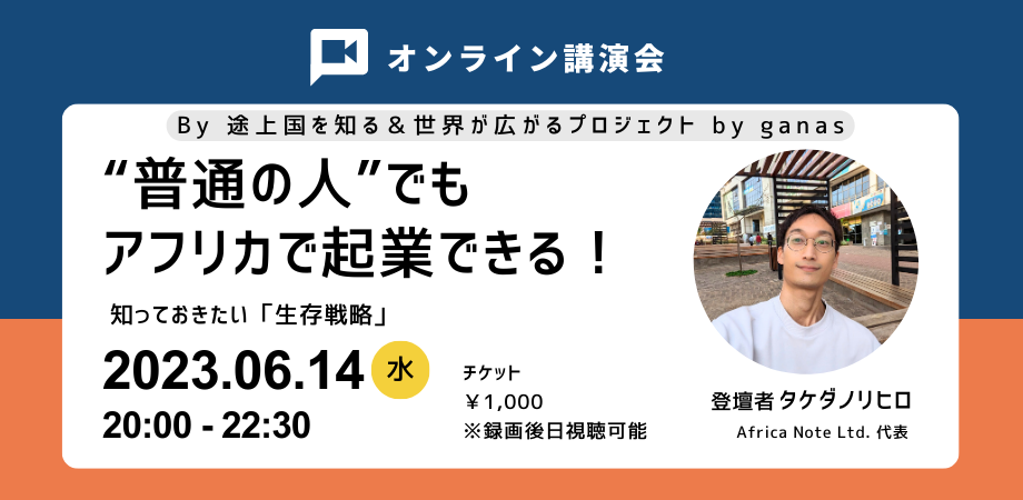 そんな方たちに朗報。アフリカで起業した“普通の人”に登壇してもらう講演会(オンライン)を開きます。