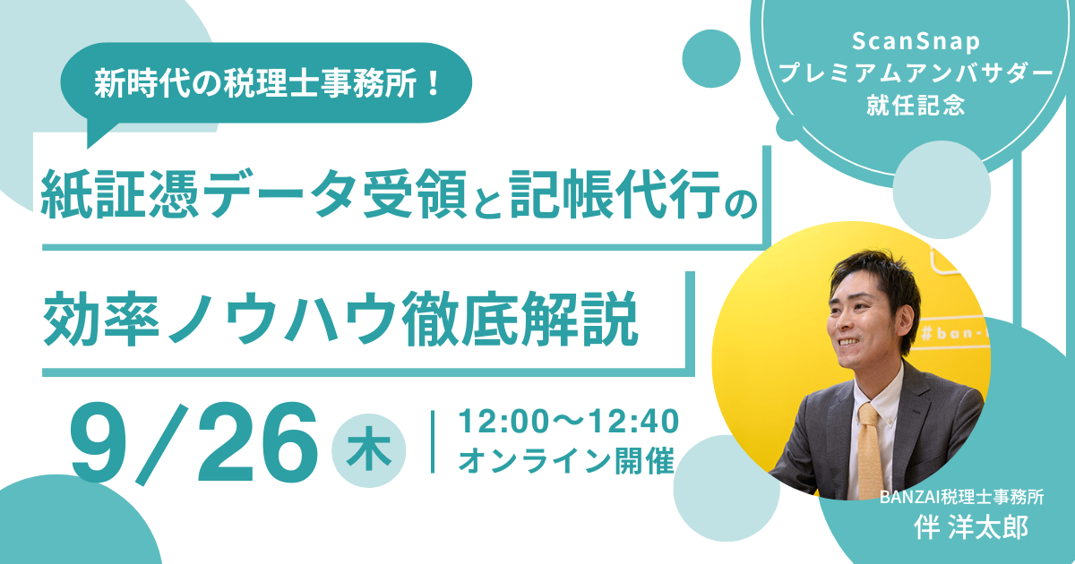 9月26日「紙証憑データ受領と記帳代行の効率ノウハウ徹底解説」オンラインセミナー開催