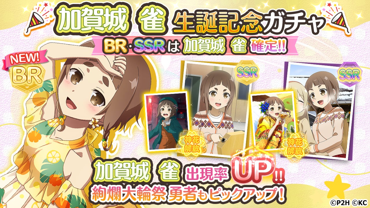 株式会社オルトプラスは、大好評配信中のスマートフォンゲーム・PCブラウザゲーム『結城友奈は勇者である 花結いのきらめき』(略称:ゆゆゆい)において、加賀城雀のBR勇者が新登場する「加賀城雀生誕記念ガチャ」を開催したことをお知らせします。
