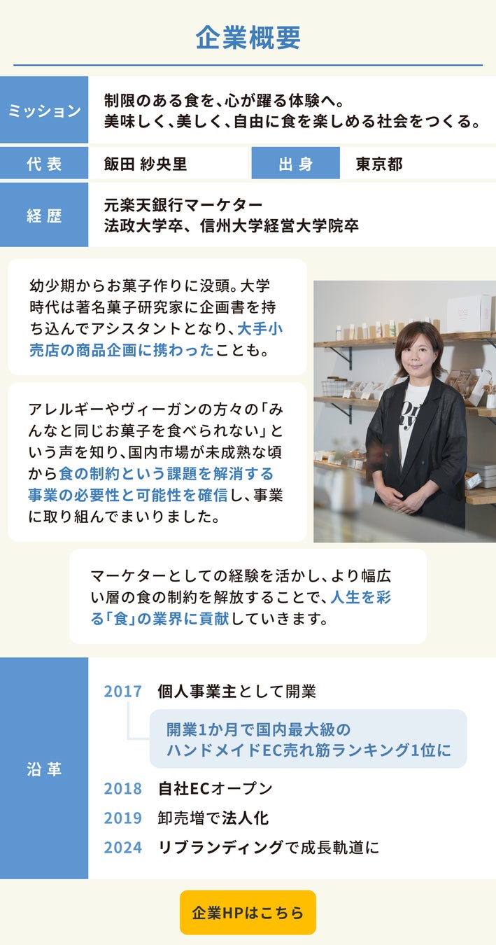 ・事業概要:ヴィーガン&グルテンフリーの菓子・軽食の製造販売