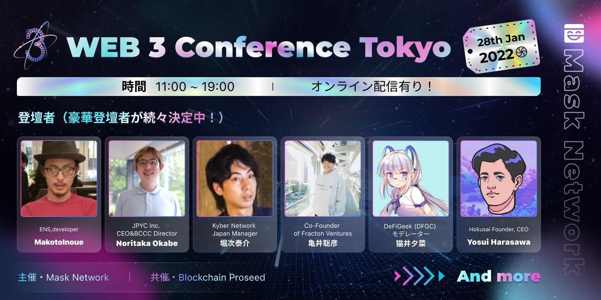 1月28日(金)Mask Network主催「Web3 Conference Tokyo」にJPYC株式会社代表取締役の岡部典孝が登壇