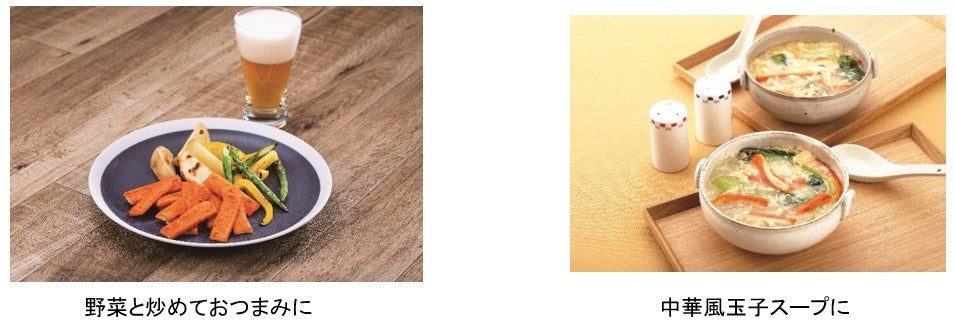 「焼えび風味スティック」は、食べた瞬間に焼いたえびの様な香ばしさと旨みを感じていただける風味かまぼこです。 そのままサラダのトッピングとしてはもちろんですが、天ぷらの素材や茶わん蒸し、パスタの具材として加熱することで、豊かな香りが料理全体を引き立て、より一層おいしくお召しあがりいただけます。