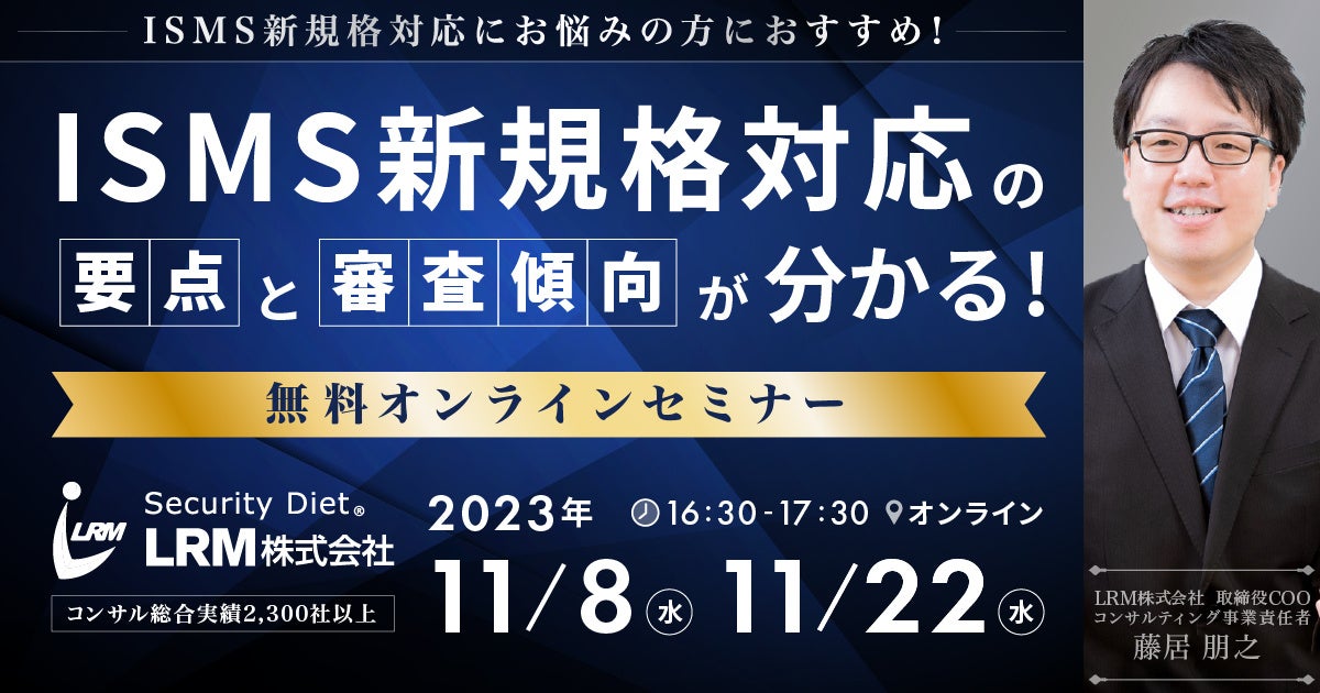 コンサルティング支援実績2,300社以上のLRM株式会社が、ISMS新規格対応の基礎知識から効率的に行うための要点、審査傾向について解説いたします。
