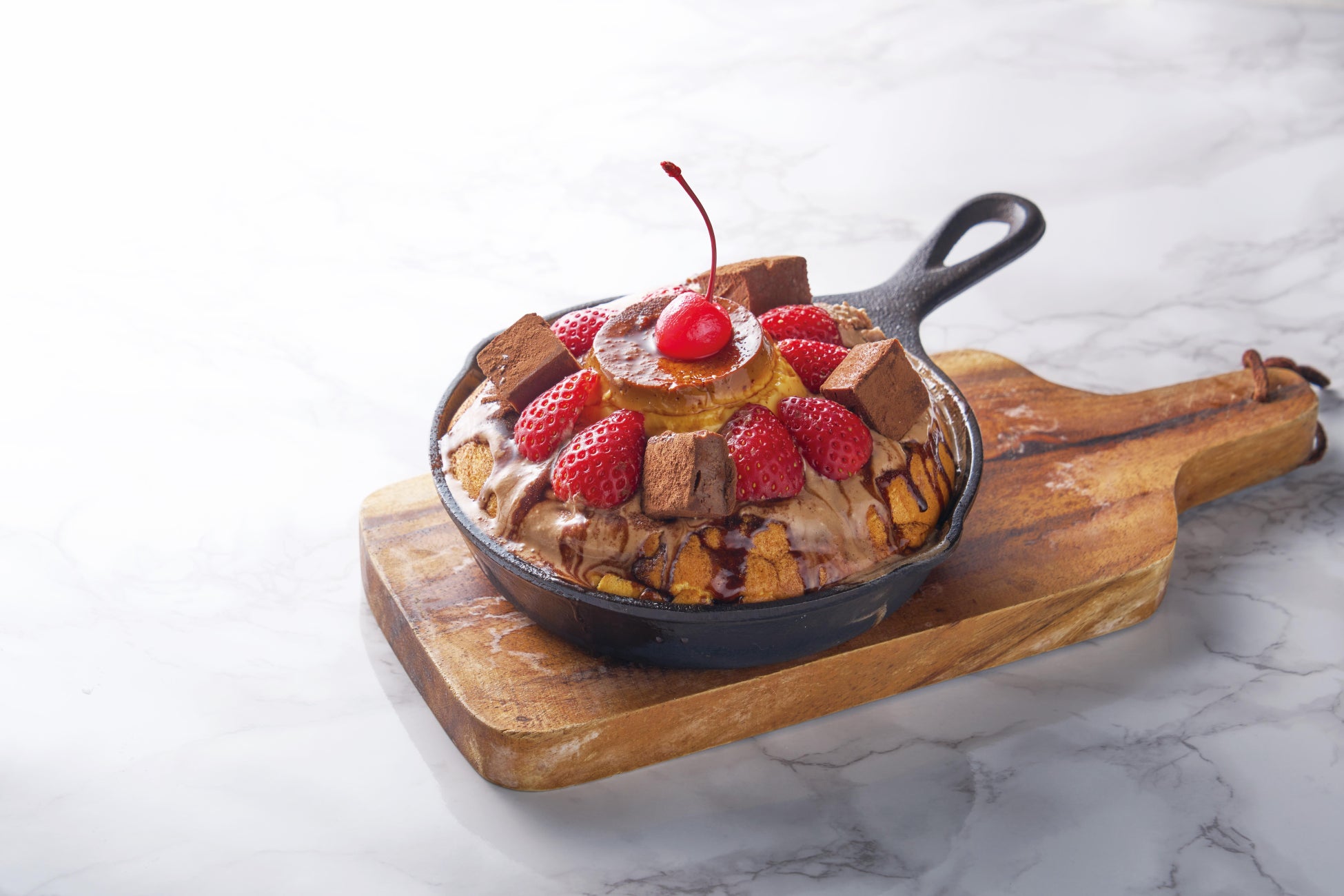 ◆『苺とショコラ、自家製プリンのスフレパンケーキ』