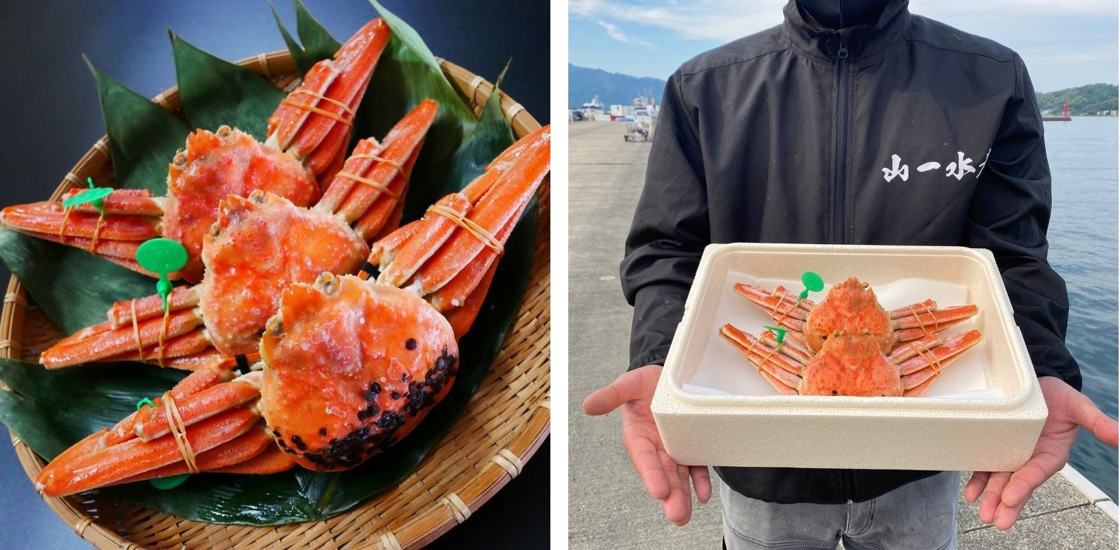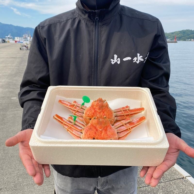 京都府間人(たいざ)漁港で松葉ガニ漁の終盤に買い付けをして、ボイル加工で旨みを閉じ込めました。小さいサイズですが、タグ付きの間人産松葉ガニをお得にお届けします。