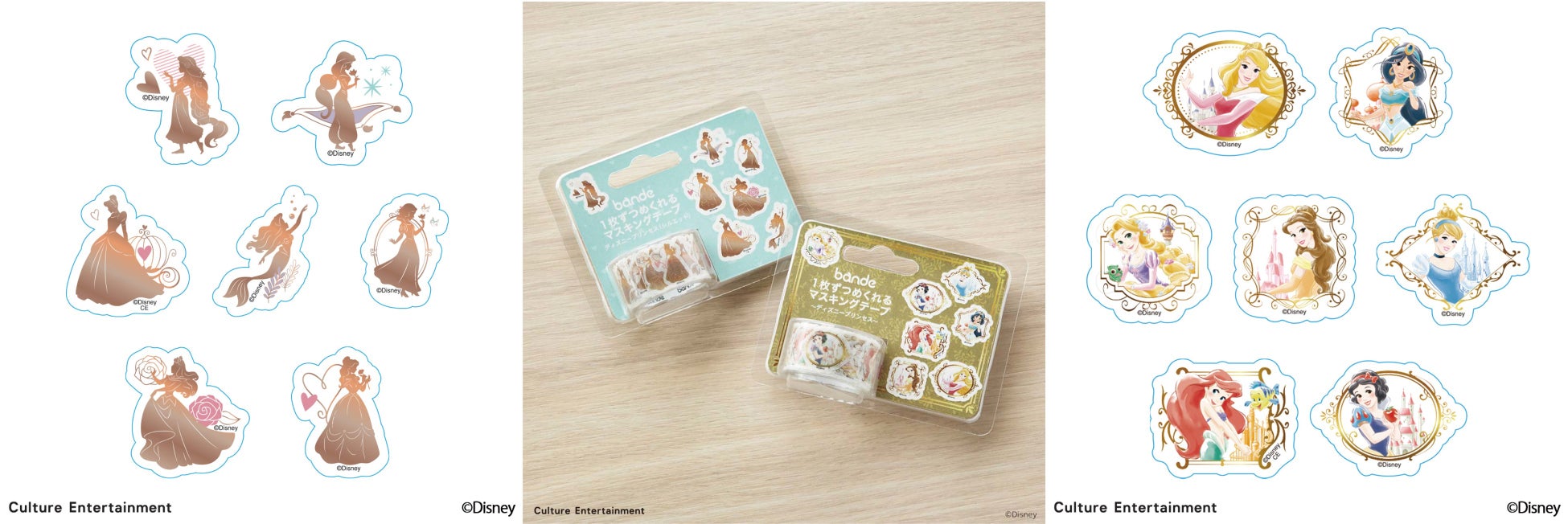 ◆bandeマスキングテープ(ディズニープリンセス/ディズニープリンセス(シルエット)デザインの全2種):各685円(税込)