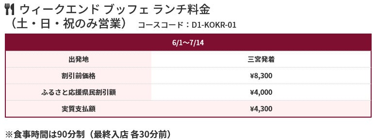 兵庫を旅しようキャンペーン+を利用してお得にお食事が楽しめるプランです。