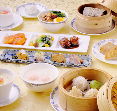小籠包、翡翠蒸し餃子、もち米焼売、ふかひれ入り蒸し餃子