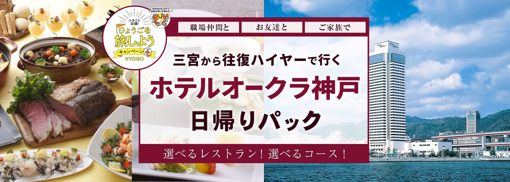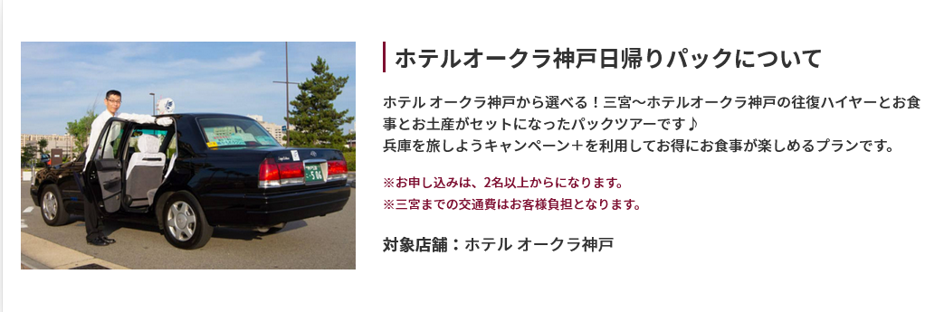 【7/14迄延長兵庫県・大阪府・京都府・鳥取県・岡山県・香川県民限定!】往復のハイヤー付き この価格 ホテルオークラ神戸で食事して5,000円!の日帰りパック