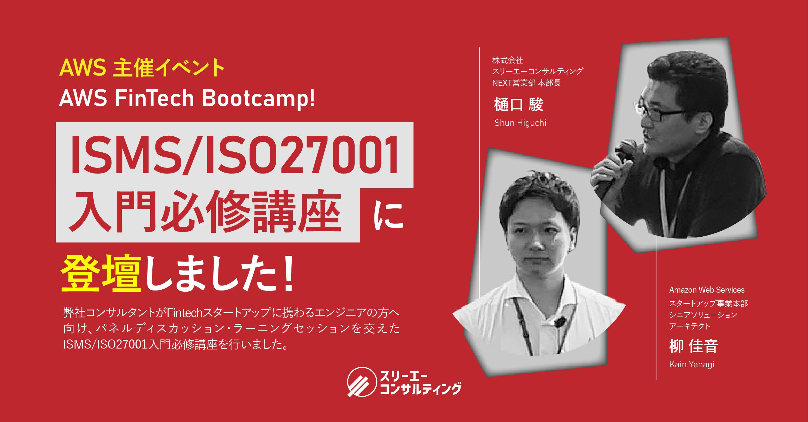 スリーエーコンサルティング、AWS主催イベント『AWS FinTech Bootcamp!』にて、ISMS/ISO27001入門必修講座に登壇しました