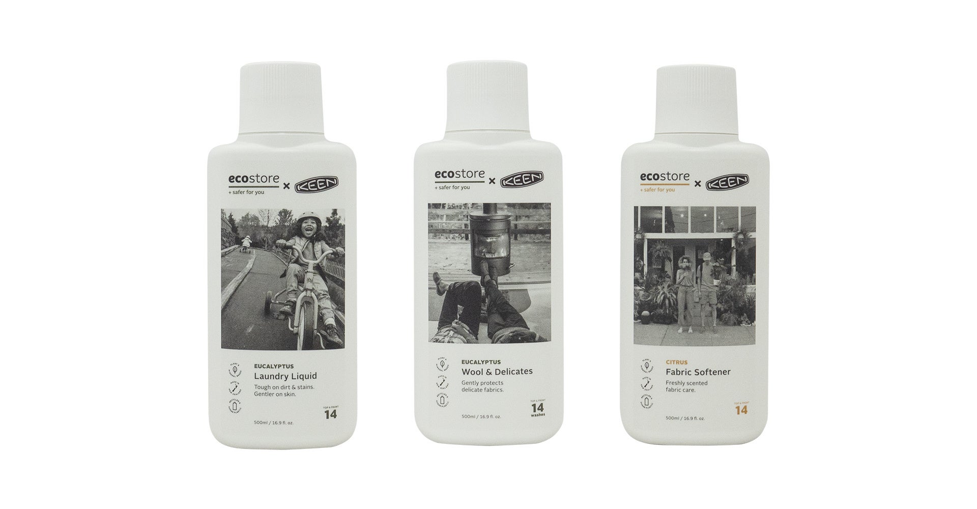 「KEEN GARAGE SHINJUKU」では、「ecostore×KEEN オリジナルデザインパッケージ」が登場。洗たく洗剤、おしゃれ着用洗剤、柔軟仕上げ剤 、計3 点を発売いたします。