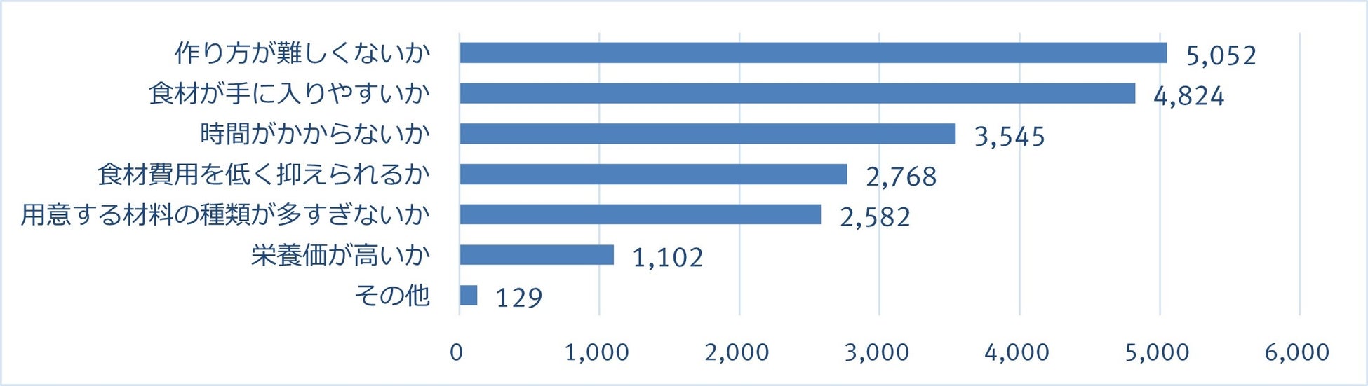 「レシピを見て魚料理を作る際に重要視することは?」の質問には、「作り方が難しくないか」が最も多く、「食材が手に入りやすいか」「時間がかからないか」「食材費用を低く抑えられるか」と続きました(複数回答)。