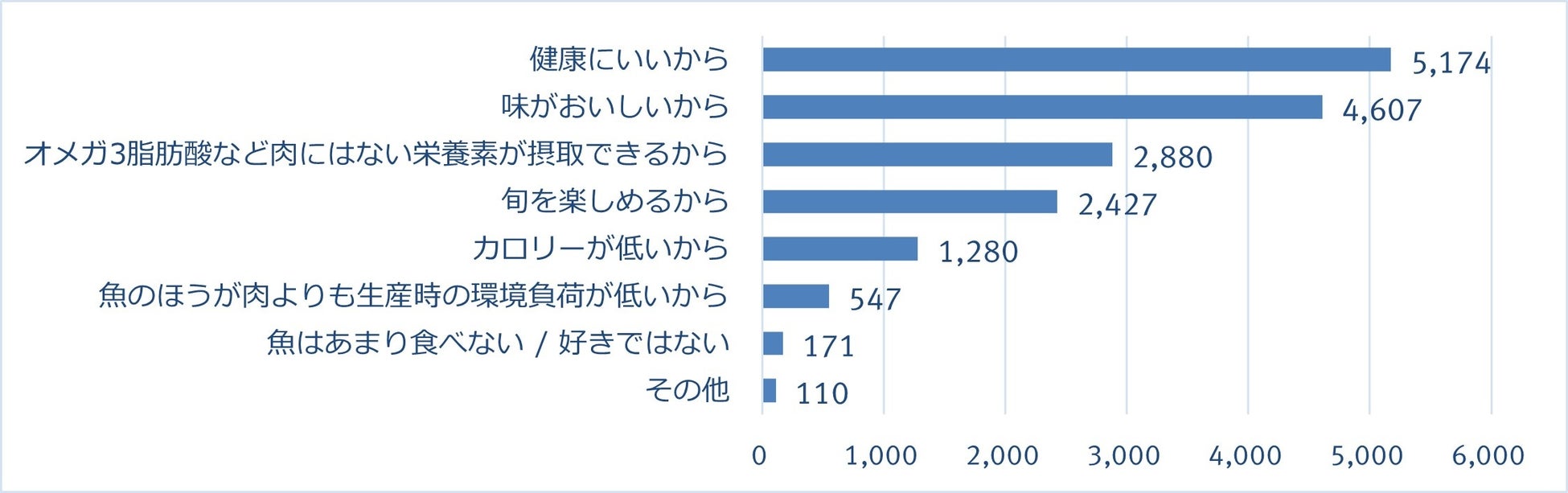 「魚料理を作る、食べる理由」(複数回答)として最も多かったのは、「健康にいいから」で、「味がおいしいから」「オメガ3脂肪酸など肉にはない栄養素が摂取できるから」が続きました。