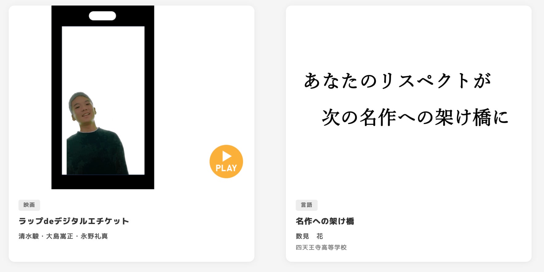 全国から多数寄せられた作品の中から、以下の受賞作品が決定しました。各作品の映像や楽曲や審査員よるコメントは、アワード特設サイト( https://digital-etiquette-japan.go.jp/award2025/ )でお楽しみください。