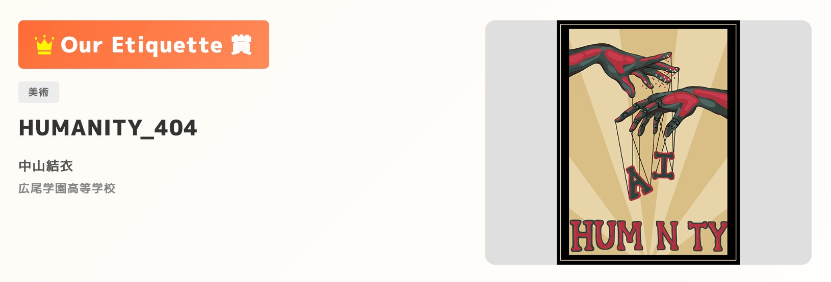 最優秀賞「Our Etiquette 賞」は、AIと人間性の関係を問う「HUMANITY_404」。