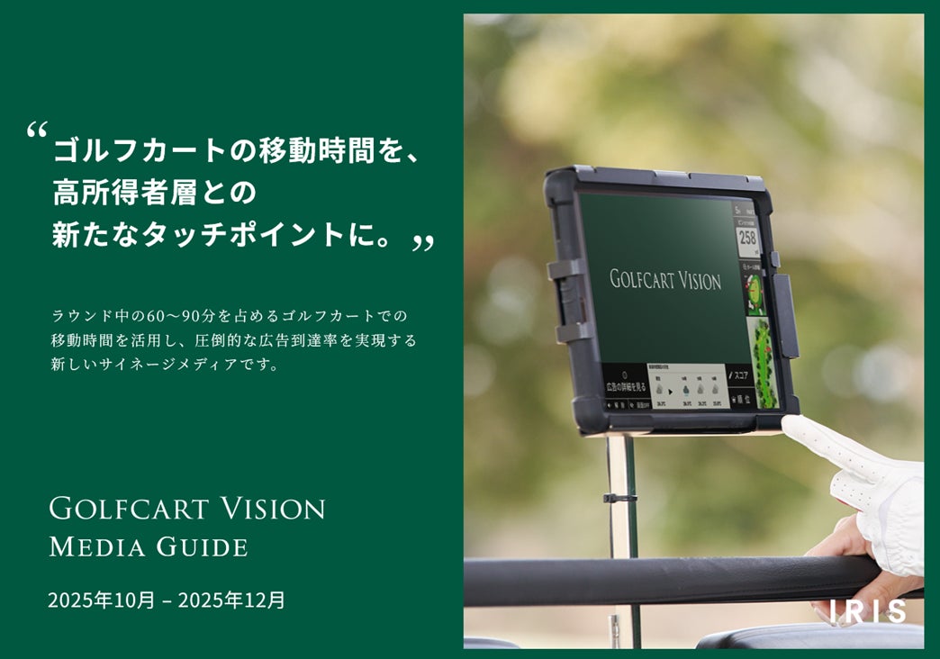 株式会社IRIS(本社:東京都港区、代表取締役:眞井 卓弥・宇木 大介、以下IRIS)と、ゴルフカートナビ国内導入実績約1,300コース(※1)の株式会社テクノクラフト(本社:新潟県新潟市、代表取締役:栂坂 昌業、以下テクノクラフト)が共同で運営するゴルフカートメディア「Golfcart Vision」は、設置台数を大幅に増やし、2025年10月-12月の媒体資料を本日2025年6月23日(月)に公開しました。
