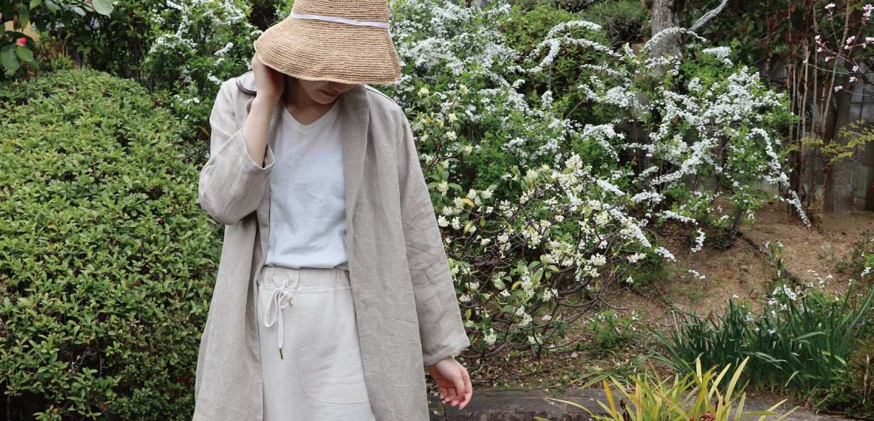 貴方もお家でも外でも一枚で決まる春夏ウェアの新定番でこの夏、貴方も麻デビューしてみませんか?