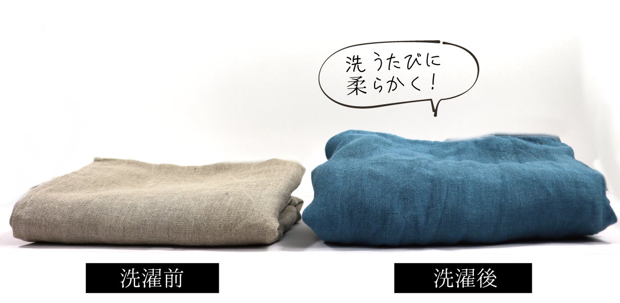 新品の状態だと少し硬さが目立ちますが、洗濯しお手入れを重ねると……。