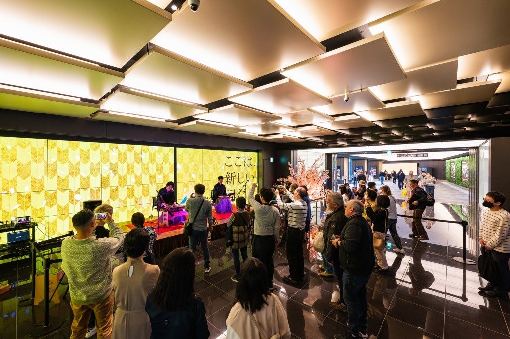 和楽器の生演奏は、羽田空港第3ターミナルに直結するエントランスにて実施し、その様子を館内の大型ビジョンで生中継することで、羽田エアポートガーデン内のショッピングモールを利用している方々にも同時に演奏を楽しんでいただくことができました。