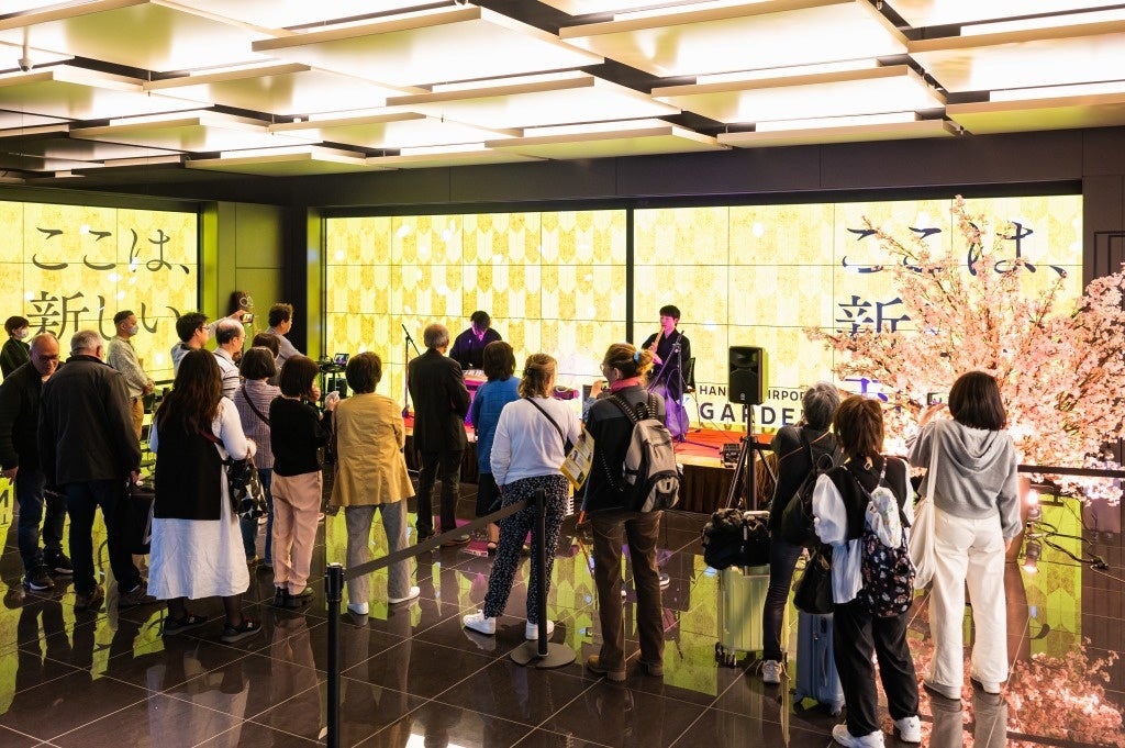 ようこそ日本へ!“日本の音色”と桜の演出が羽田空港の訪日外国人を魅了