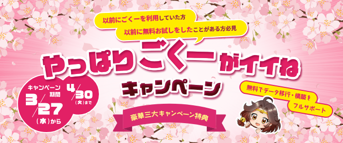 以前ごくーを利用していた方、ごくーの無料お試しをしたことがある方は必見! 当時のアカウントを復元。データ移行・構築はスタッフに任せても無料です!