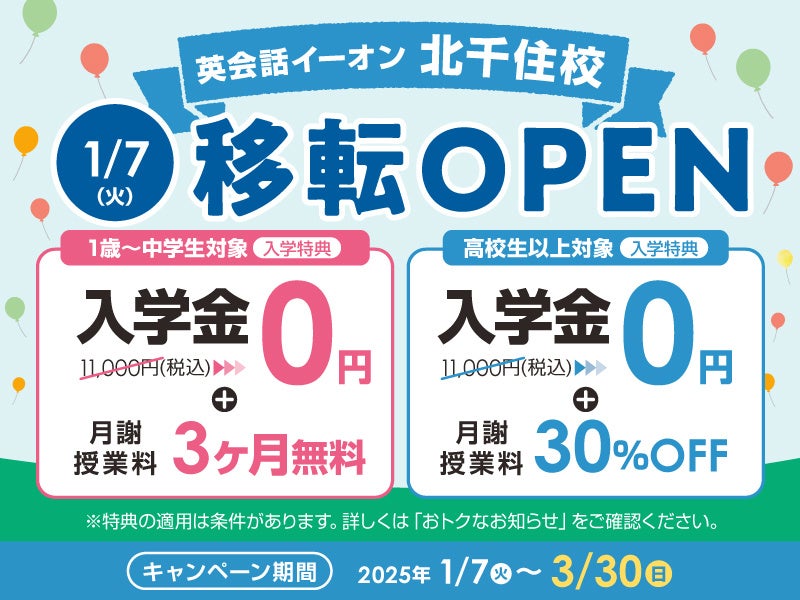 イーオン北千住校 2025年1月7日(火)に移転オープン!