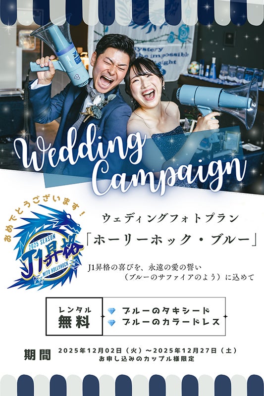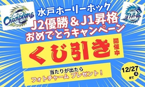 株式会社小野写真館(本社:茨城県ひたちなか市/代表取締役:小野哲人)は、オフィシャルパートナーである水戸ホーリーホックのJ1昇格およびJ2優勝を記念し、12月1日~12月27日まで特別キャンペーンを実施中です。