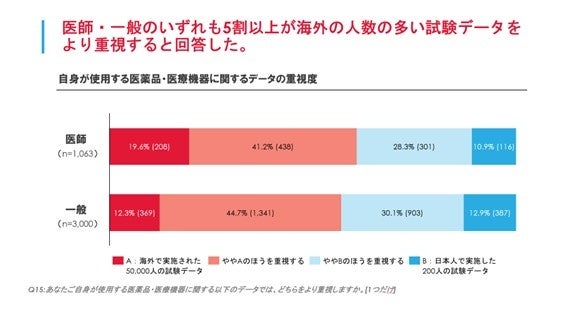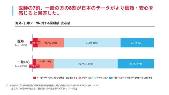 一般の方・医師の大半が海外よりも日本のRWDに信頼・安心を感じるも、データ量が多ければ海外データも信頼
