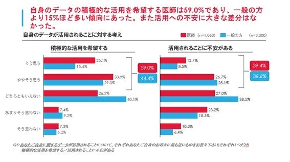 個人として自身のRWDを積極的に活用されることを希望する医師は59%、一般の方は44.4%